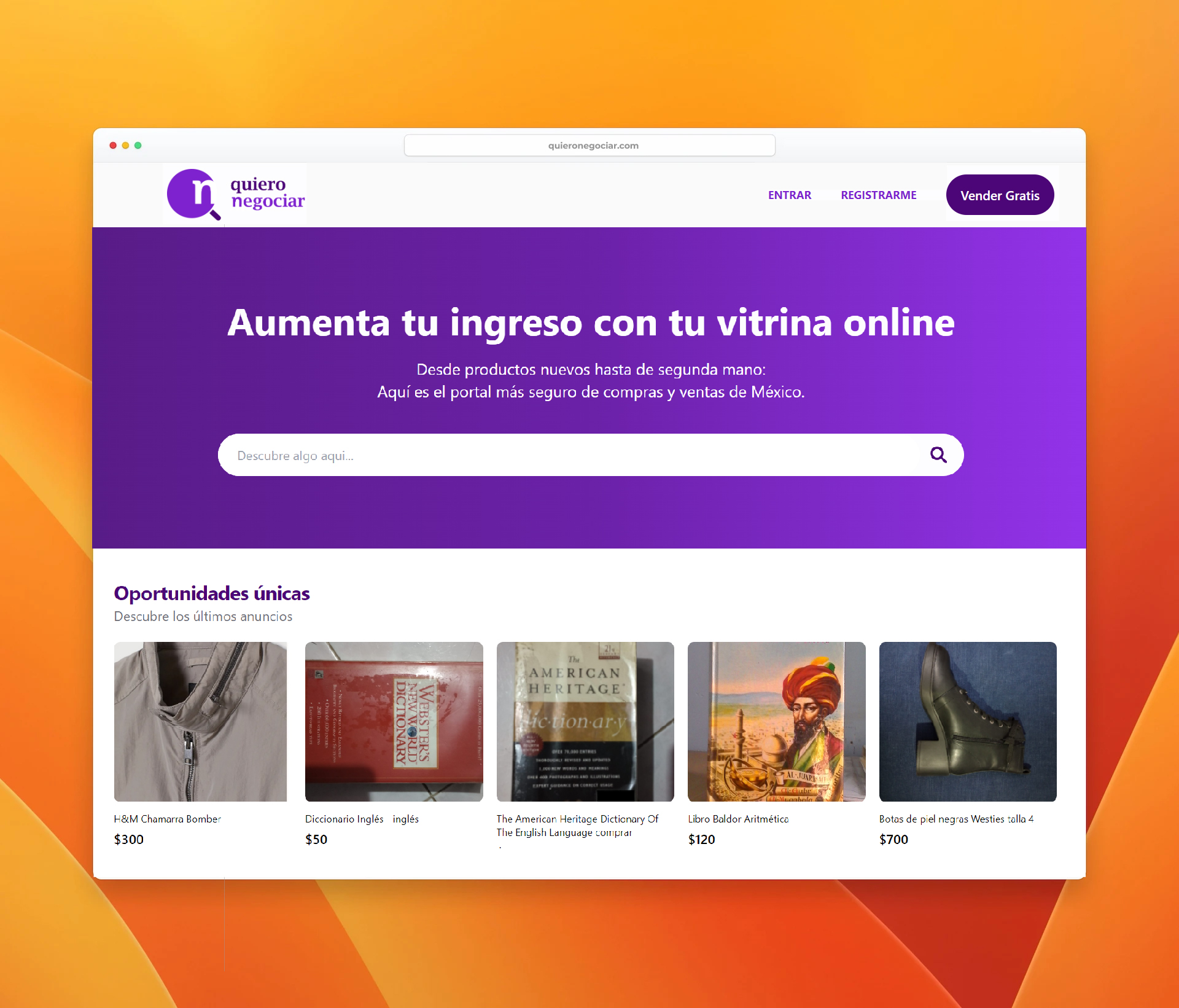 Quiero Negociar is the MVP of a buy-sell marketplace with advanced security measures, SEO optimized and efficient payment processing at its core.