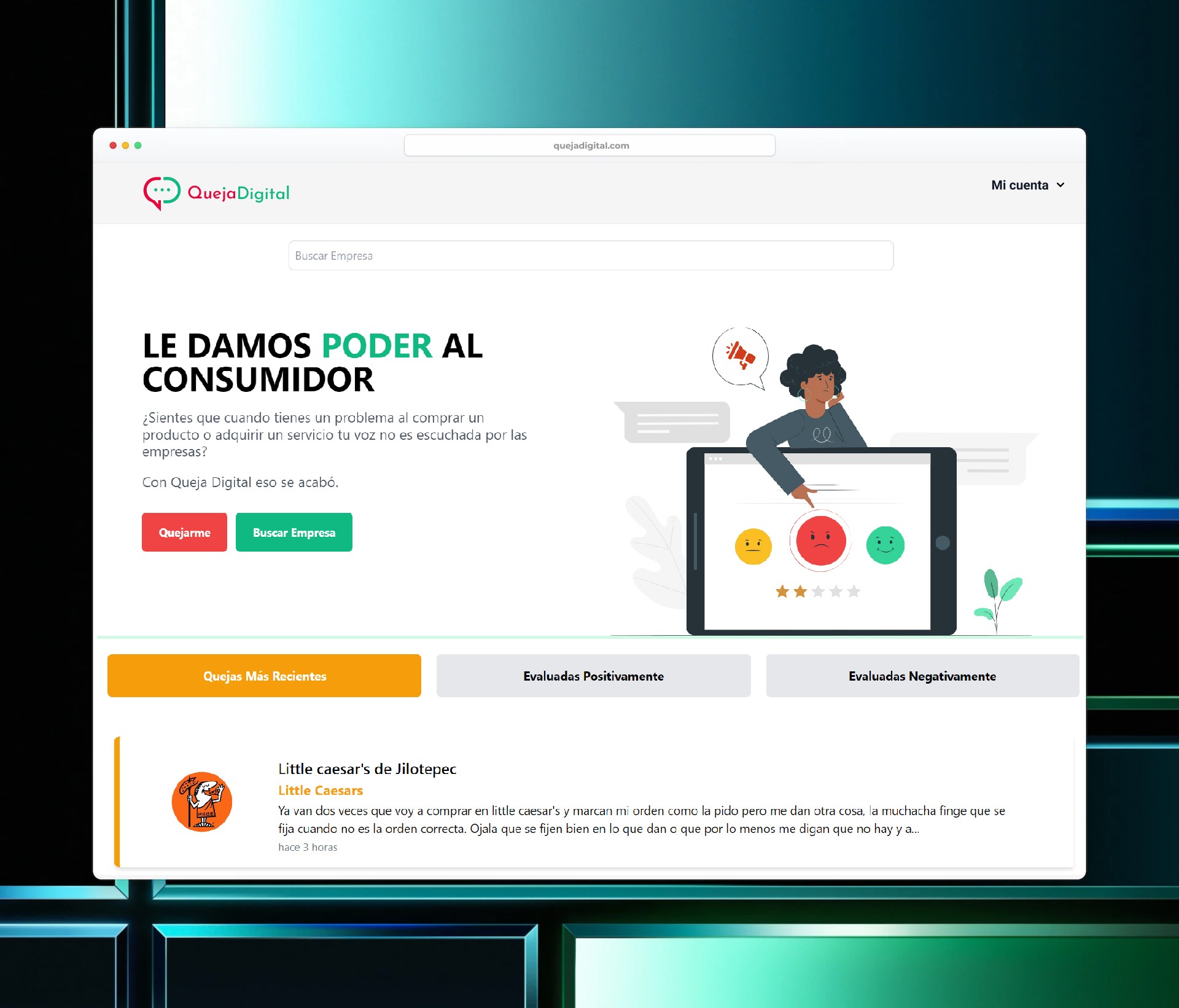 Challenge and Partnership: When Queja Digital, Latin America's leading consumer complaint platform, needed a technological overhaul, they partnered with our dev agency. We were entrusted to reimagine and reshape the platform's infrastructure for millions of users.